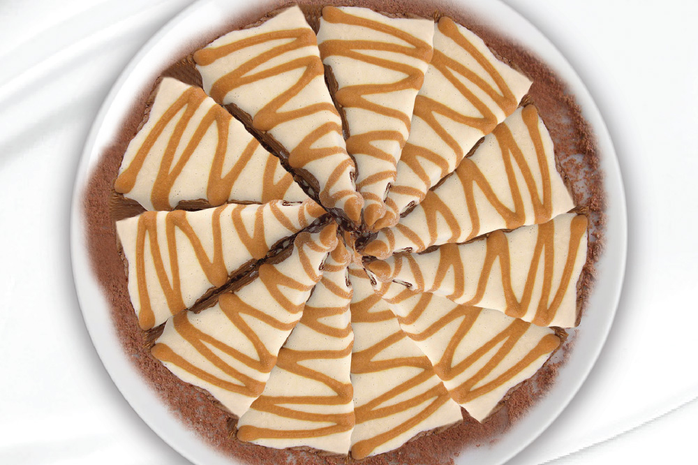 The onlv one of its kind. A must-have for non-dessert lovers! Chocolate-cashew crust with coffee fillings topped with cream cheese & toffee sauce.